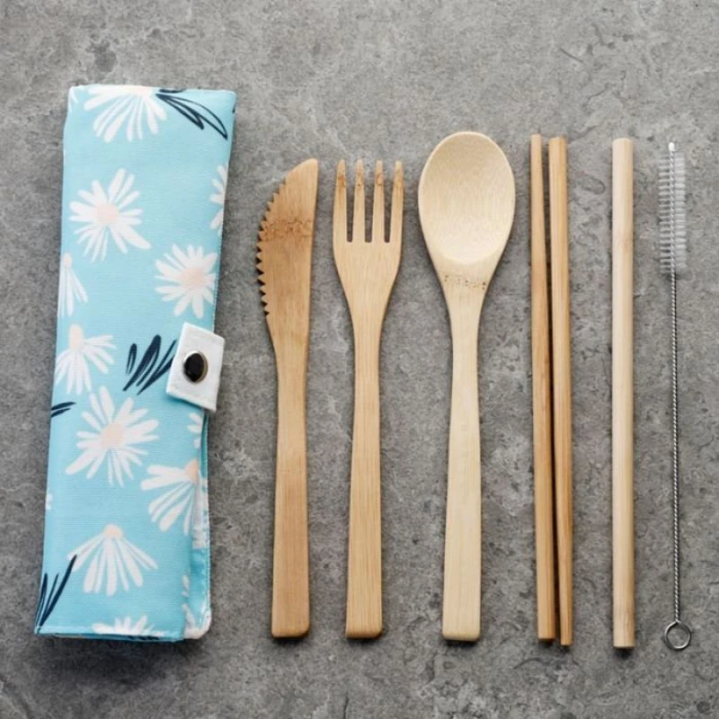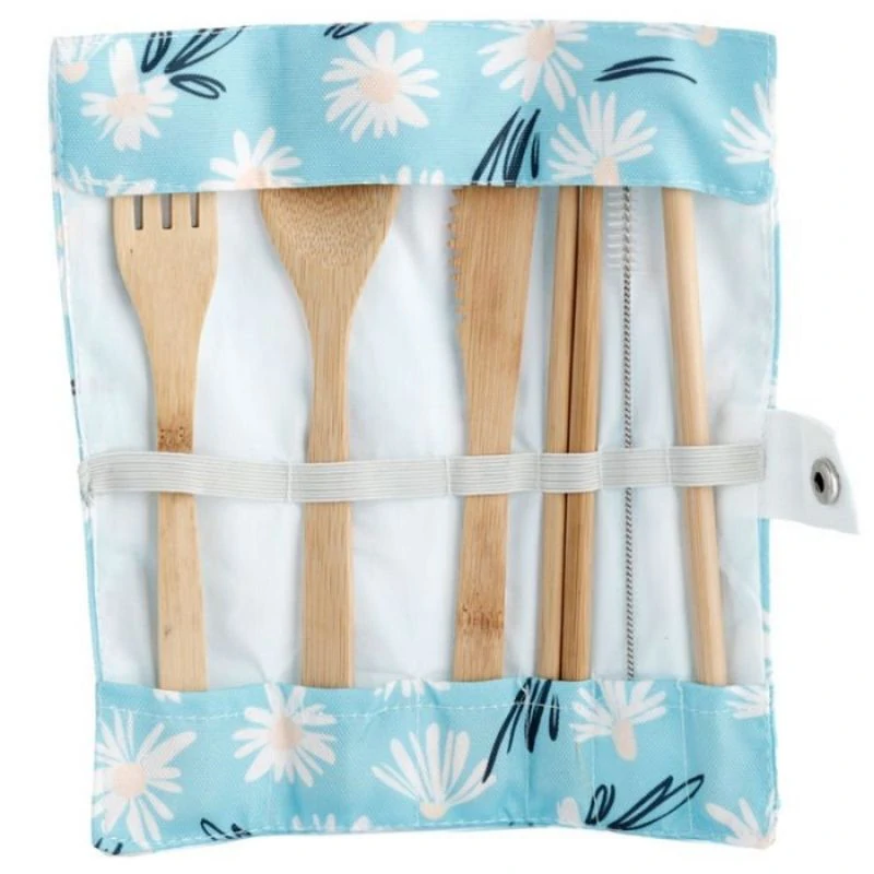 Μαχαιροπίρουνα από Φυσικό Μπαμπού σε Θήκη από Καμβά Μαργαρίτες Σετ 6 τεμαχίων