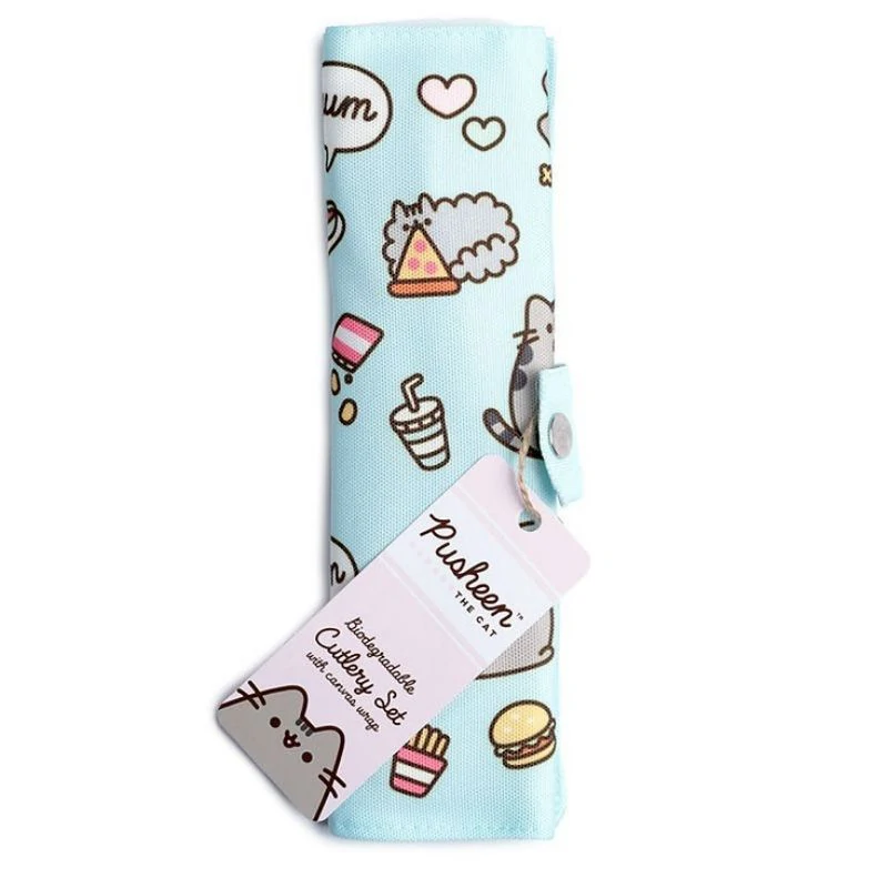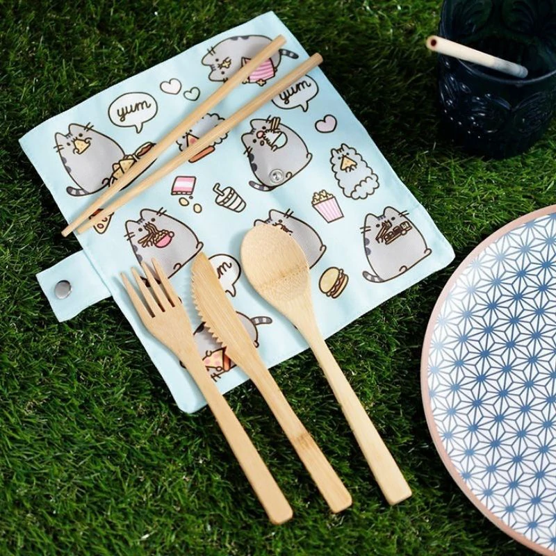 Μαχαιροπίρουνα από Φυσικό Μπαμπού σε Θήκη από Καμβά Pusheen Cat Σετ 6 τεμαχίων