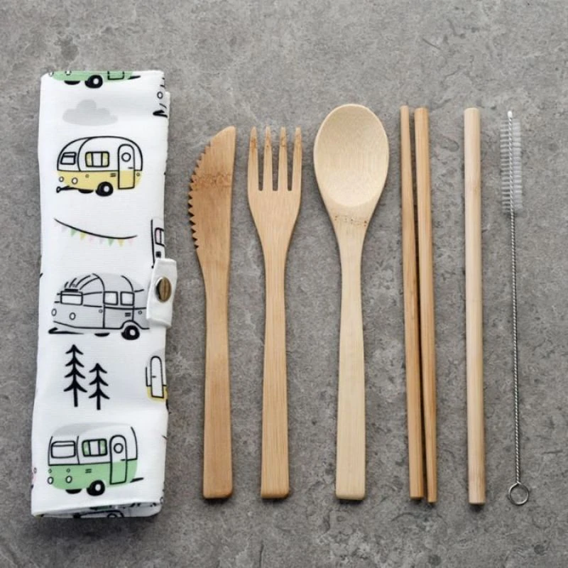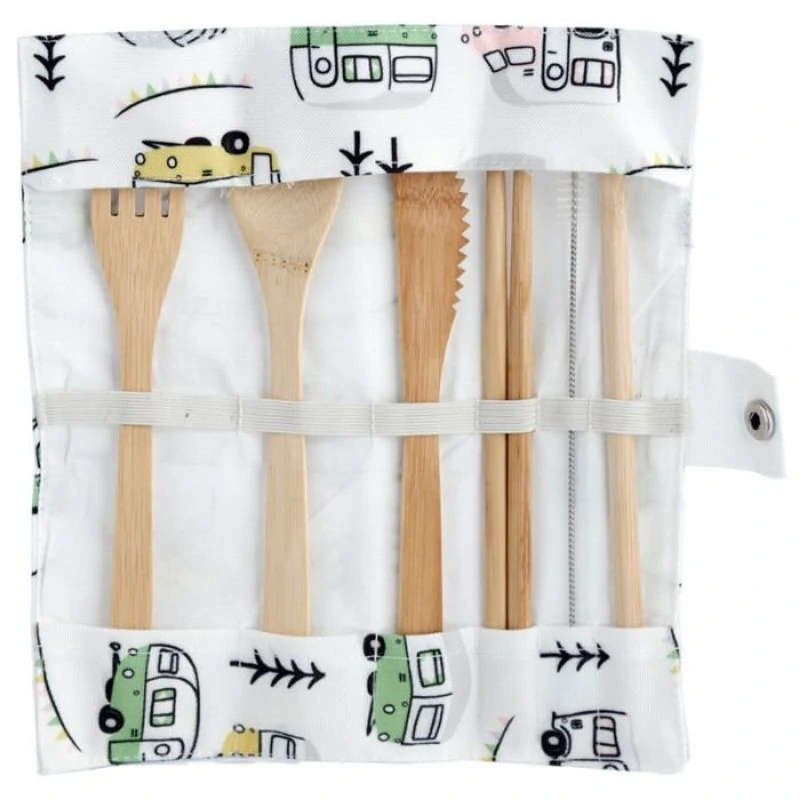 Μαχαιροπίρουνα από Φυσικό Μπαμπού σε Θήκη από Καμβά Wildwood Caravan Σετ 6 τεμαχίων