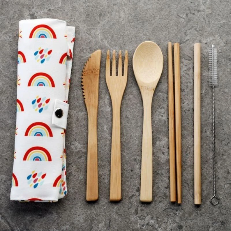 Somewhere Rainbow Μαχαιροπήρουνα 100% από Φυσικό Bamboo 6 τεμαχίων σε θήκη καμβά