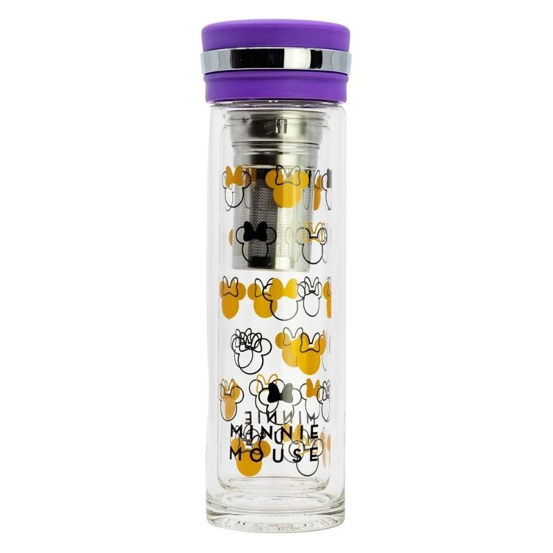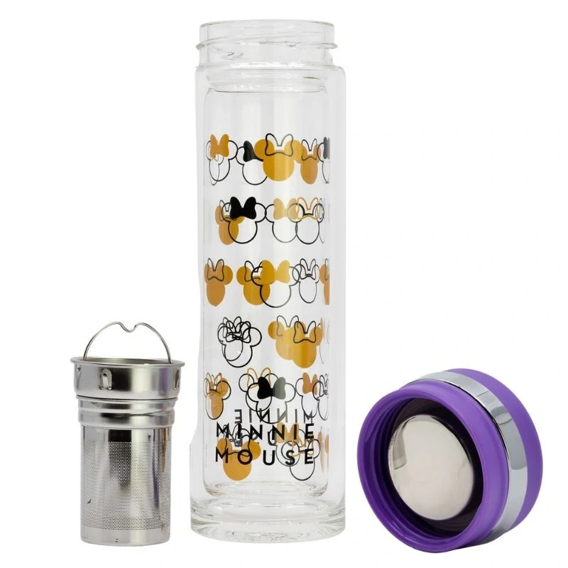 Εύχρηστο γυάλινο μπουκάλι νερού από βοριοπυριτικό διπλού τοιχώματος με αποσπώμενο εγχυτήρα τσαγιού. Το μπουκάλι είναι διακοσμημένο με φιγούρες από τον κόσμο του κινηματογράφου και των βιντεοπαιχνιδιών είναι ιδανικό για την παρασκευή τσαγιού ή την έγχυση φρούτων.