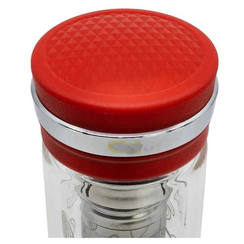 Εύχρηστο γυάλινο μπουκάλι νερού από βοριοπυριτικό διπλού τοιχώματος με αποσπώμενο εγχυτήρα τσαγιού. Το μπουκάλι είναι διακοσμημένο με φιγούρες από τον κόσμο του κινηματογράφου και των βιντεοπαιχνιδιών είναι ιδανικό για την παρασκευή τσαγιού ή την έγχυση φρούτων.